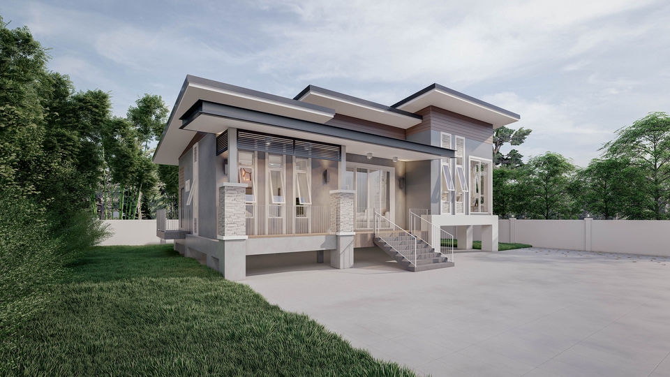 🏠- โครงการบ้านพักอาศัย 1 ชั้นครึ่ง -🏠 ออกแบบสไตล์บ้านสวนใต้ถุนลอย ขนาดพื้นที่ใช้สอย 128 ตารางเมตร ตัวอาคารประกอบด้วย - ห้องโถงรับแขก 1 ห้อง - ห้องนอน 2 ห้อง - ห้องน้ำ 3 ห้อง - ห้องรับประทานอาหาร - ห้องครัว 1 ห้อง ขั้นตอนการทำงาน 1. คุยรายละเอียดงาน ความต้องการ 2. วางแผน ร่างแบบ ทำแบบ 3. พัฒนาปรับปรุงแบบ 4. ตรวจสอบคาวมเรียบร้อยก่อนส่งงาน