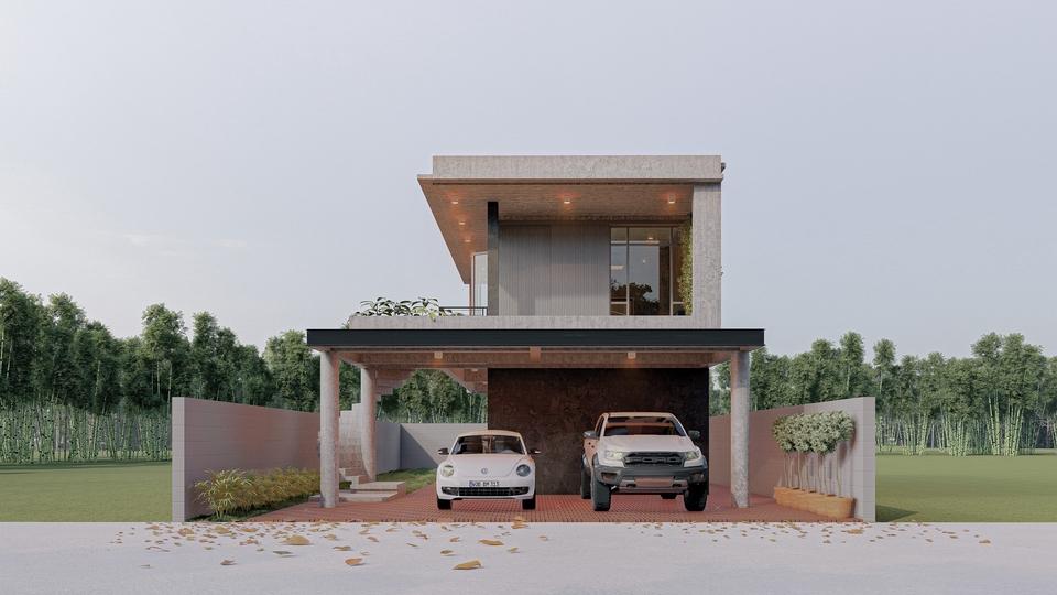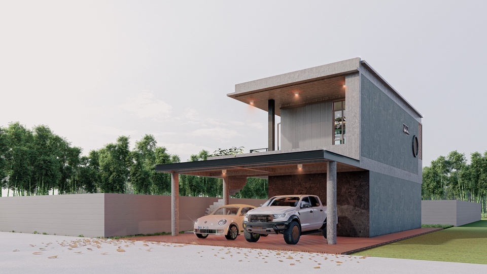 โครงการบ้านพักอาศัย 2 ชั้น - ห้องโถงรับแขก ห้อง - ห้องนอน 1 ห้อง - ห้องน้ำ 2 ห้อง - ห้องรับรองลูกค้า - ห้องครัว 1 ห้อง - พื้นที่ซักล้าง - พื้นที่จอดรถ 5 คัน ขั้นตอนการทำงาน 1. คุยรายละเอียดงาน ความต้องการ 2. วางแผน ร่างแบบ ทำแบบ 3. พัฒนาปรับปรุงแบบ 4. ตรวจสอบคาวมเรียบร้อยก่อนส่งงาน