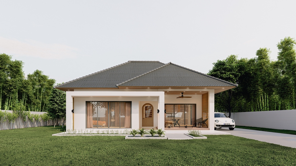 🏠- โครงการบ้านพักอาศัย 1 -🏠 ออกแบบสไตล์บ้านทรงปั้นหยา ขนาดพื้นที่ใช้สอย 118 ตารางเมตร ตัวอาคารประกอบด้วย - พื้นที่รับแขก - ห้องนอน 2 ห้อง - ห้องน้ำ 2 ห้อง - ห้องรับประทานอาหาร - ห้องครัว 1 ห้อง - พื้นที่จอดรถ - พื้นที่ซักล้าง ขั้นตอนการทำงาน 1. คุยรายละเอียดงาน ความต้องการ 2. วางแผน ร่างแบบ ทำแบบ 3. พัฒนาปรับปรุงแบบ 4. ตรวจสอบคาวมเรียบร้อยก่อนส่งงาน