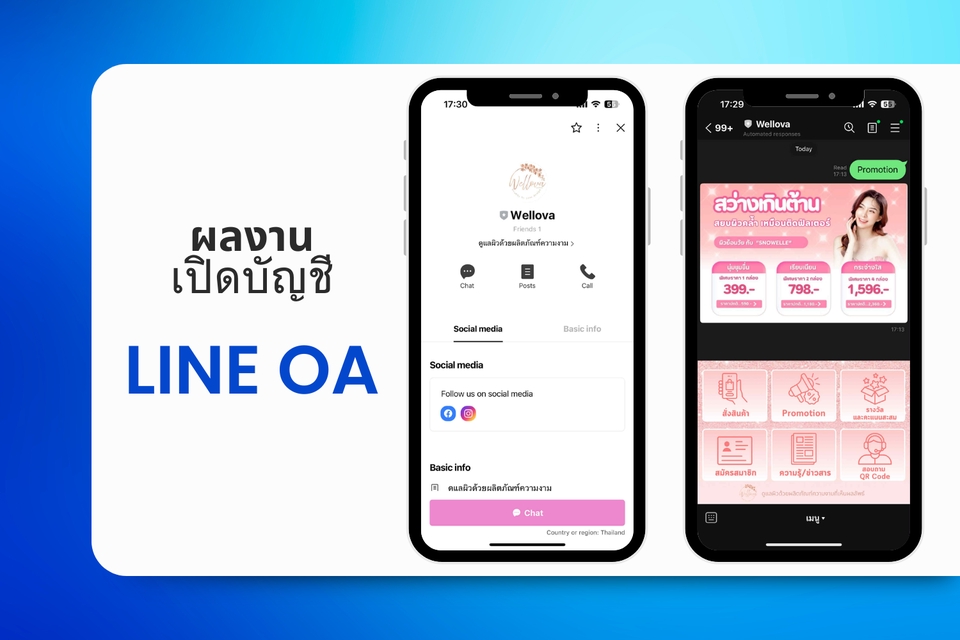 ฿1,390บัญชี Line OA 1 บัญชี พร้อมฟีเจอร์พื้นฐาน ดังนี้ ข้อมูลพื้นฐานธุรกิจ โปรไฟล์ + พื้นหลัง ริชเมนู ริชเมสเสจหรือการ์ดเมสเสจ ข้อความทักทายเพื่อนใหม่ ข้อความตอบกลับอัตโนมัติ คูปอง หรือ บัตรสะสมแต้ม