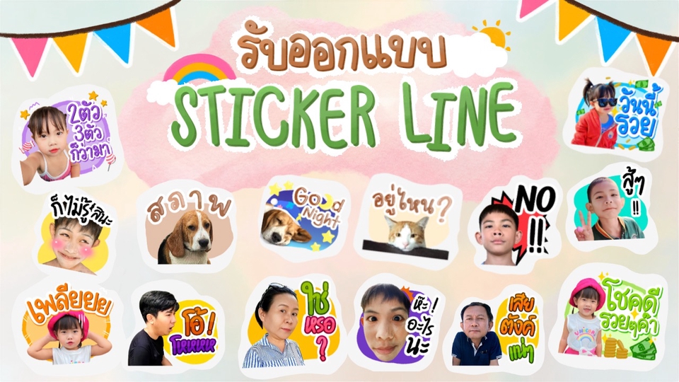 ออกแบบสติกเกอร์ไลน์ รูปถ่าย/การ์ตูน หลากหลายสไตล์ตามใจคุณ