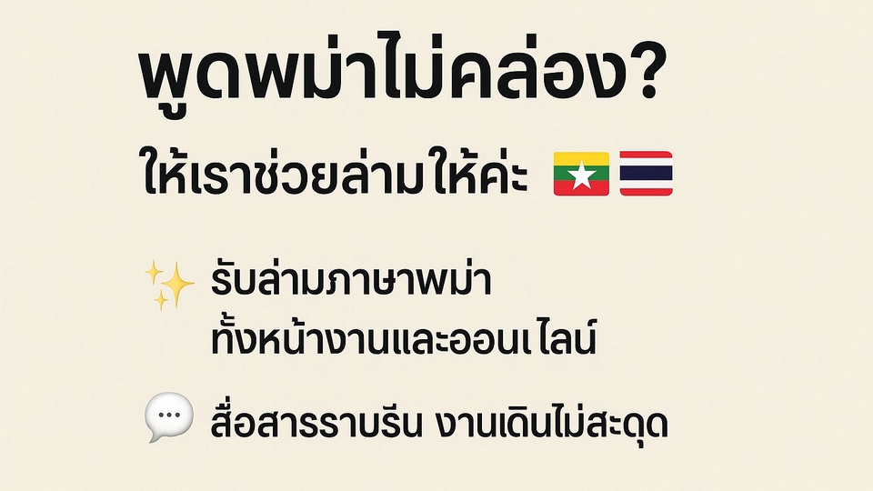 งานล่ามภาษาพม่า รับงานวันอาทิตย์วันเดียว พื้นที่ระยอง