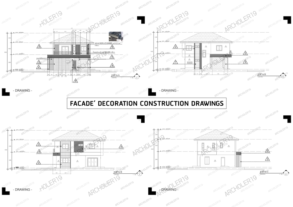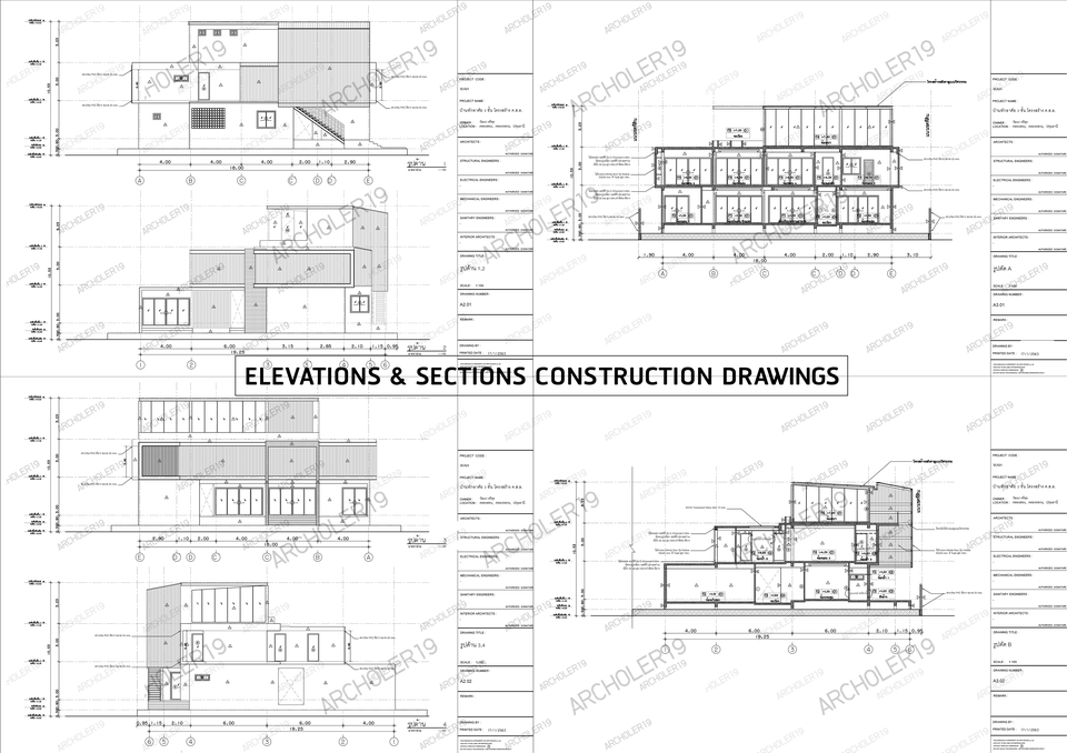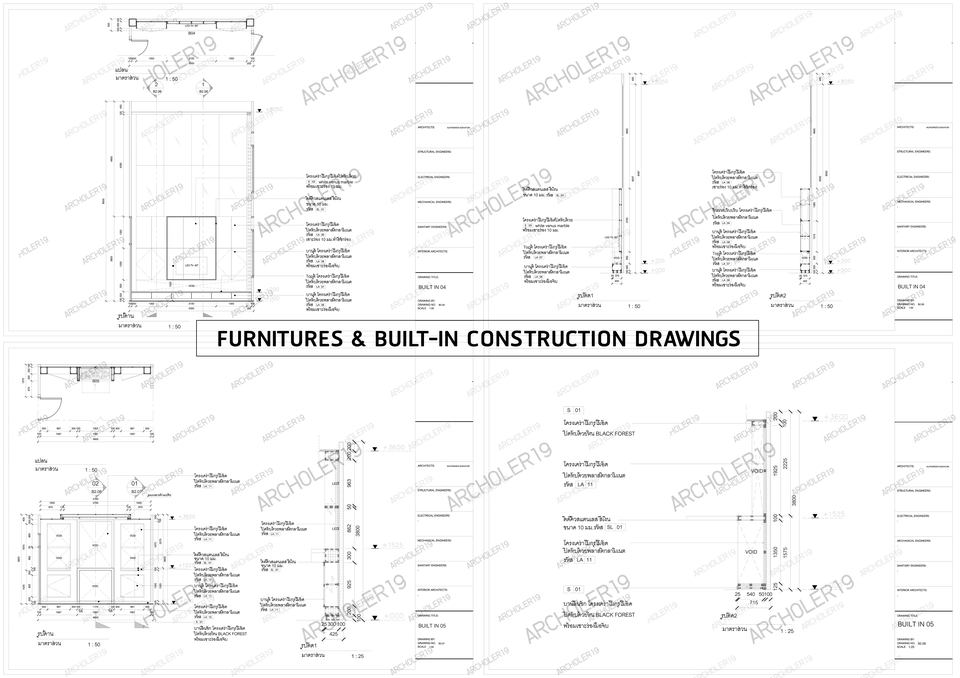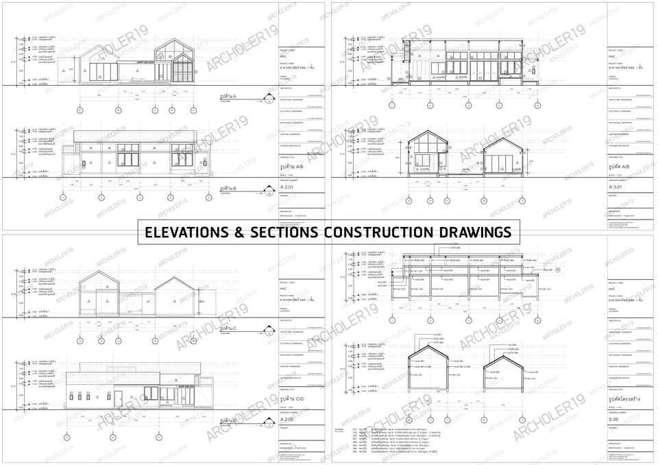 เขียนแบบสถาปัตย์ +แบบงานภายใน+แบบวิศวกรรมโครงสร้าง