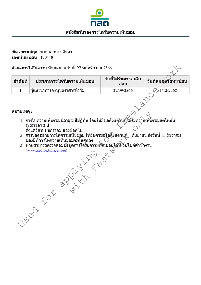 ฿1,500วิเคราะห์และจัดทำสรุปกรมธรรม์ที่ผู้รับคำปรึกษาและของครอบครัวถือครองอยู่ วางแผนการลดหย่อนภาษีจากแบบประกัน รวมถึงจัดทำแผนงบประมาณเพื่อการประกันชีวิต-ประกันสุขภาพในระยะยาว รวมถึงเสนอแนะแบบประกันที่เหมาะสม คุ้มค่า และ update กับสถานการณ์ปัจจุบัน