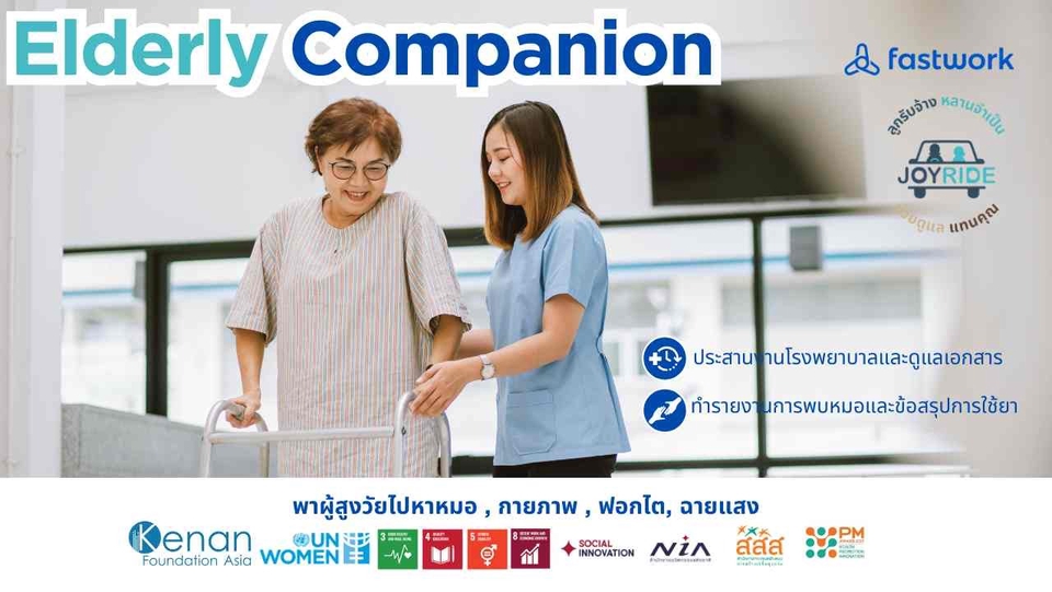 Fastwork x Joy Ride รับจ้างพาผู้สูงวัย ผู้ป่วย คนท้อง ไปหาหมอ