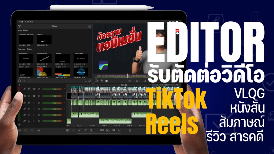 รับตัดต่อวิดีโอ สัมภาษณ์/หนังสั้น/Vlog/สารคดี/TikTok/Reels