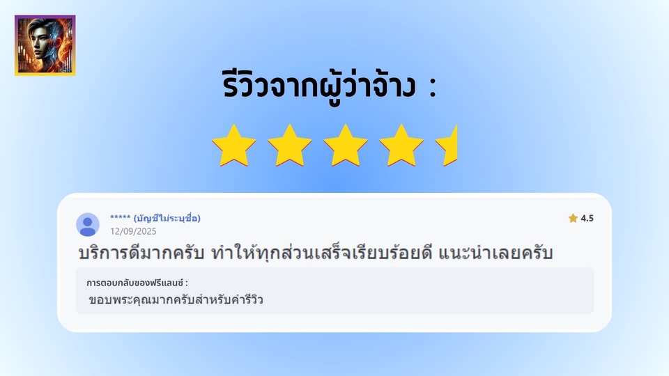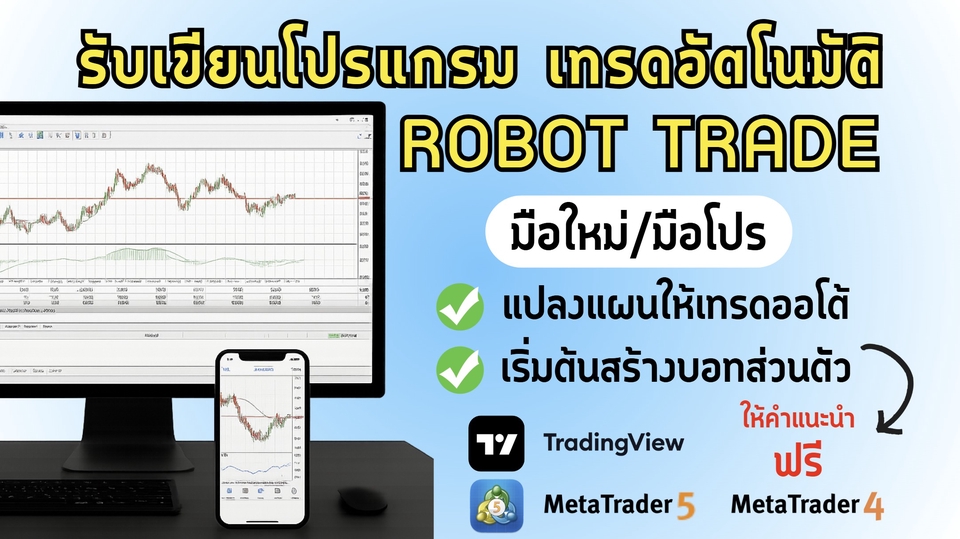 รับเขียนโปรแกรมเทรดอัตโนมัติ (EA) สำหรับ MetaTrader 5 และ MetaTrader 4 จากกลยุทธ์หรืออินดิเคเตอร์ที่คุณใช้อยู่จริง พร้อมให้คำแนะนำและวิเคราะห์เพื่อออกแบบระบบที่มีประสิทธิภาพ ใช้งานได้จริง ไม่ล็อกบัญชี ใช้ได้ทุกโบรกเกอร์และทุกบัญชีเทรด สิ่งที่ลูกค้าจะได้รับ - ไฟล์ EA นามสกุล .ex5 (MT5) หรือ .ex4 (MT4) พร้อมใช้งาน - ระบบไม่ล็อกบัญชี ใช้ได้ทุกพอร์ต ทั้งบัญชีจริงและเดโม่ - รองรับการตั้งค่าผ่าน Input เช่น Lot Size, SL, TP, Risk %, Trailing Stop, Time Filter - ฟรีบริการ Optimize ค่าอินพุตที่เหมาะสมสำหรับสินทรัพย์ที่ลูกค้าใช้งาน - แก้ไขงานฟรีตามจำนวนครั้งตามแพ็กเกจ ประสบการณ์และความเชี่ยวชาญ - เทรดเดอร์และนักพัฒนา EA มืออาชีพ ประสบการณ์ตรงจากตลาดจริง - เชี่ยวชาญการเขียน EA และ Indicator ด้วยภาษา MQL5 / MQL4 - เข้าใจพฤติกรรมอินดิเคเตอร์ยอดนิยม เช่น RSI, EMA, MACD, Bollinger, Fractals และอื่นๆบน Tradingview - มีประสบการณ์ออกแบบระบบเทรดที่ยืดหยุ่น ปรับใช้ได้หลากหลายกลยุทธ์ ขั้นตอนการทำงาน - ลูกค้าส่งไอเดีย / อินดิเคเตอร์ / Logic ที่ต้องการให้ EA ทำงาน - พูดคุยเพื่อทำความเข้าใจ เพิ่มเติมหากจำเป็น พร้อมแนะนำแนวทางที่เหมาะสม - เขียน EA และจัดทำ Input ให้สามารถปรับแต่งได้เองในอนาคต - Optimize ระบบตามสินทรัพย์ที่ลูกค้าจะใช้งาน (ฟรี) - ส่งไฟล์ .ex5 หรือ .ex4 พร้อมวิธีใช้งานและทดสอบเบื้องต้น - แก้ไข (ถ้ามี) ตามแพ็กเกจที่เลือก สิ่งที่ต้องการจากผู้ว่าจ้าง - รายละเอียด Logic หรืออินดิเคเตอร์ที่ใช้อยู่ - Timeframe ที่ต้องการใช้งาน (แต่ใช้ได้ทุกTimeFrame) - เงื่อนไขพิเศษ เช่น เทรดเฉพาะช่วงเวลา หรือต้องการ trailing stop - สินทรัพย์ที่ใช้หลัก เช่น BTC, XAUUSD, EURUSD (แต่ใช้ได้ทุกสินทรัพย์) ข้อกำหนดและเงื่อนไข - ไฟล์ที่ส่งมอบเป็น .ex5 หรือ .ex4 เท่านั้น ไม่รวมซอร์สโค้ด (.mq5/.mq4) - หากต้องการไฟล์ซอร์ส สามารถสั่งซื้อแพ็กเกจเดิมอีกครั้งเพื่อรับโค้ด - ไม่รับเขียนระบบที่เกี่ยวข้องกับการพนันหรือสิ่งผิดกฎหมาย - ลูกค้าสามารถนำ EA ไป Optimize และใช้งานต่อได้อย่างเต็มที่