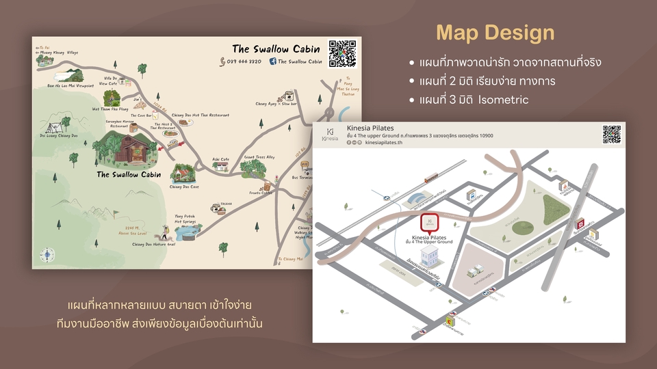 รับออกแบบและเขียนแผนที่หลากหลายรูปแบบตามที่ลูกค้าต้องการ แผนที่สไตล์ -มินิมอล กึ่ง3D /3D Isometric ด้วยมุมมองมิติอาคาร สถานที่ตำแหน่งจริงของลูกค้า แผนที่ลายเส้นการ์ตูน -ลายเส้นรายละเอียดสูง วาดจากข้อมูลภาพอาคารสถานที่ตำแหน่งจริงของลูกค้า แผนที่แบบงานวาดสีน้ำ -Watercolor Map วาดจากข้อมูลภาพอาคารสถานที่ตำแหน่งจริงของลูกค้า แผนที่สำหรับ -Art Map Concept Art Map รายละเอียดตามบรีฟที่ต้องการ แผนที่ท่องเที่ยว -วาดแสดงตำแหน่งอาคารสถานที่แหล่งท่องเที่ยวต่างๆที่น่าสนใจ ลูกค้าแจ้งรายละเอียดงานที่ต้องการสอบถามราคางานเพิ่มเติมได้ค่ะ ขั้นตอนการทำงาน 1. รับบรีฟงานจากลูกค้า, ร่างแผนที่เป็นรายเส้นคร่าวๆ ในกรณีที่ลูกค้าไม่แจ้งรายชื่อสถานที่ที่ต้องการมาให้ ทางเราจะเลือกให้ และส่งแบบร่างให้ลูกค้าตรวจสอบความถูกต้อง 2. สร้างสรรค์ผลงานด้วยโปรแกรม Adobe Illustrator, Photoshop 3. เก็บรายละเอียด ปรับแต่งโทนสีโดยรวม ตรวจเช็คตำแหน่งความถูกต้องของชิ้นงาน 4. ส่งตรวจงานไฟล jpg. edit แรกตามกำหนดวันส่ง ลูกค้าปรับแก้งานได้ไม่เกิน 5 ครั้ง แก้ไขครั้งที่ 6 เพิ่ม 200-300 บาท ปรับแก้งานได้ไม่เกิน 50 % ของแนวงานที่ตกลง 5. ปรับแก้ไขงานเรียบร้อย ส่งงานลูกค้าไฟนอลและ ส่งงานขั้นตอนสุดท้าย