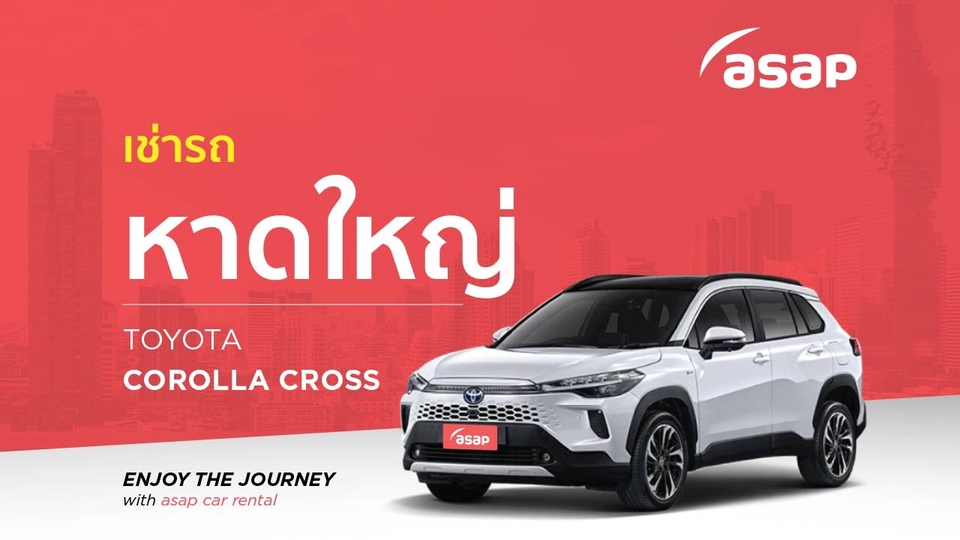 ราคา / วัน รวมประกัน SCDW Toyota Corolla Cross 1.8 คือรถครอสโอเวอร์ SUV ที่ครบเครื่องทั้งด้านความสะดวกสบาย ความน่าเชื่อถือ และการใช้งานที่หลากหลาย ขับเคลื่อนด้วยเครื่องยนต์ขนาด 1.8 ลิตร พร้อมเกียร์อัตโนมัติ ให้การขับขี่ที่นุ่มนวลและตอบสนองได้อย่างมั่นใจ ตำแหน่งเบาะนั่งที่สูงช่วยให้ผู้ขับขี่มองเห็นถนนได้ชัดเจนยิ่งขึ้น ขณะที่ภายในห้องโดยสารกว้างขวาง มีพื้นที่ศีรษะและที่วางขาสำหรับผู้โดยสารทุกที่นั่งอย่างเพียงพอ ดีไซน์ภายนอกดูโฉบเฉี่ยวทันสมัย เสริมด้วยห้องโดยสารที่เงียบและเก็บเสียงได้ดี ช่วยยกระดับประสบการณ์การขับขี่ในทุกเส้นทาง ด้วยชื่อเสียงด้านคุณภาพและความทนทานของ Toyota รถรุ่นนี้จึงผสานความคุ้มค่าในการใช้งานเข้ากับสไตล์ที่เหนือระดับได้อย่างลงตัว จุดเด่น: - เครื่องยนต์ 1.8 ลิตร พร้อมเกียร์อัตโนมัติ ขับขี่นุ่มนวล และประหยัดน้ำมัน - ห้องโดยสารกว้างขวาง เบาะนั่งสูง มองเห็นถนนชัดเจน - รูปทรงแบบครอสโอเวอร์ ให้ทั้งความคล่องตัวและความอเนกประสงค์ - พื้นที่เก็บสัมภาระด้านหลังกว้าง เหมาะสำหรับเดินทางไกล เหมาะสำหรับ: ครอบครัว, คู่รัก, นักเดินทางเพื่อธุรกิจ, เดินทางไกล, และผู้ขับขี่ที่มองหาความสบายและความมั่นใจในการขับ ข้อกำหนดและเงื่อนไข เอกสารที่ต้องใช้ในการเช่ารถ 1. หนังสือเดินทางหรือบัตรประจำตัวประชาชนไทย 2. ใบขับขี่ที่ถูกต้องตามกฎหมาย: • ใบขับขี่ของไทย หรือใบขับขี่สากลสำหรับชาวต่างชาติ • ใบขับขี่ดิจิทัลของไทยผ่านแอปพลิเคชันกรมการขนส่งทางบก DLT ทั้งนี้ ไม่รับสำเนาหรือใบอนุญาตขับขี่ดิจิทัลที่ออกโดยหน่วยงานต่างประเทศ 3. บัตรเครดิตตัวจริงสำหรับวางมัดจำ: • บริษัท asap จะทำการสำรองวงเงิน (pre-authorize) บนบัตรเครดิต 6,000 บาท สำหรับรถทุกรุ่น ยกเว้นรถยนต์ไฟฟ้า ซึ่งจะมีการสำรองวงเงิน จำนวน 8,000 บาท • ประเภทบัตรเครดิต: Visa, MasterCard, JCB และ UnionPay ที่ร่วมกับ Visa หรือ MasterCard เท่านั้น • ชื่อบนบัตรเครดิตต้องตรงกับชื่อบนหนังสือเดินทางหรือบัตรประชาชนของผู้ขับขี่หลัก • ไม่รับบัตรเดบิต, บัตรเครดิตของบุคคลอื่น, วิธีการชำระเงินดิจิทัล (เช่น Google Pay, Apple Pay) หรือเงินสด 4. หลักฐานยืนยันการจอง (สามารถแสดงแบบพิมพ์หรือแบบดิจิทัลได้) คุณสมบัติของผู้ขับขี่ 1. อายุผู้ขับขี่ต้องอยู่ระหว่าง 21 - 65 ปี 2. ผู้ขับขี่ต้องถือใบขับขี่ที่ถูกต้องและใช้งานมาแล้วไม่น้อยกว่า 1 ปี เงื่อนไขสำคัญสำหรับการเช่า 1. ประกันภัย 1.1 ประกันที่มีค่าเสียหายส่วนแรก (CDW) รวมอยู่ในค่าเช่าและลดความรับผิดชอบทางการเงินของผู้เช่าสำหรับความเสียหายที่เกิดขึ้นกับรถยนต์ ผู้เช่าต้องชำระค่าเสียหายส่วนแรกตามราคาที่บริษ