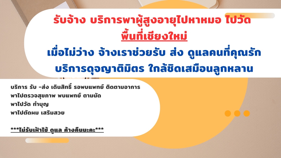 รับจ้างพาผู้สูงอายุไปทำบุญ ไปหาหมอ พื้นที่เชียงใหม่