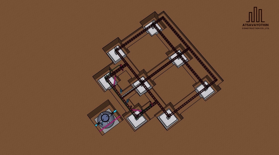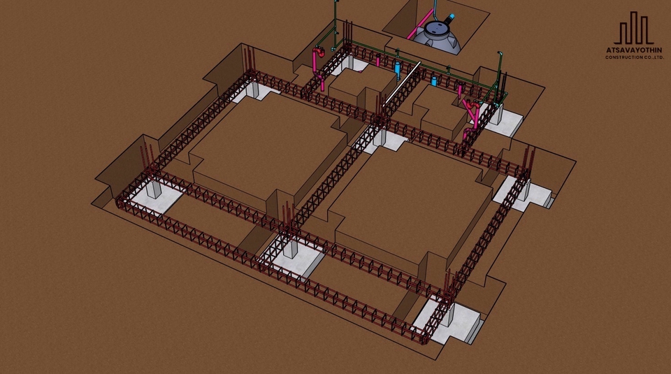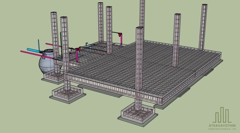 - • แบบสถาปัตย์ + โครงสร้าง + ระบบ (ไฟฟ้า, ประปา, สุขาภิบาล)