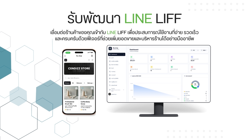 - • ปรับแต่งและพัฒนาฟีเจอร์ภายในระบบตามรูปแบบการทำงานของร้านค้า