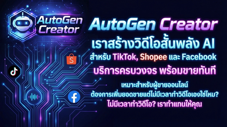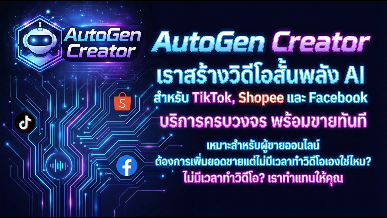 รับทำคลิปสั้น AI ปักตะกร้า TikTok / Facebook / Shopee ดันยอดขายได้จริง