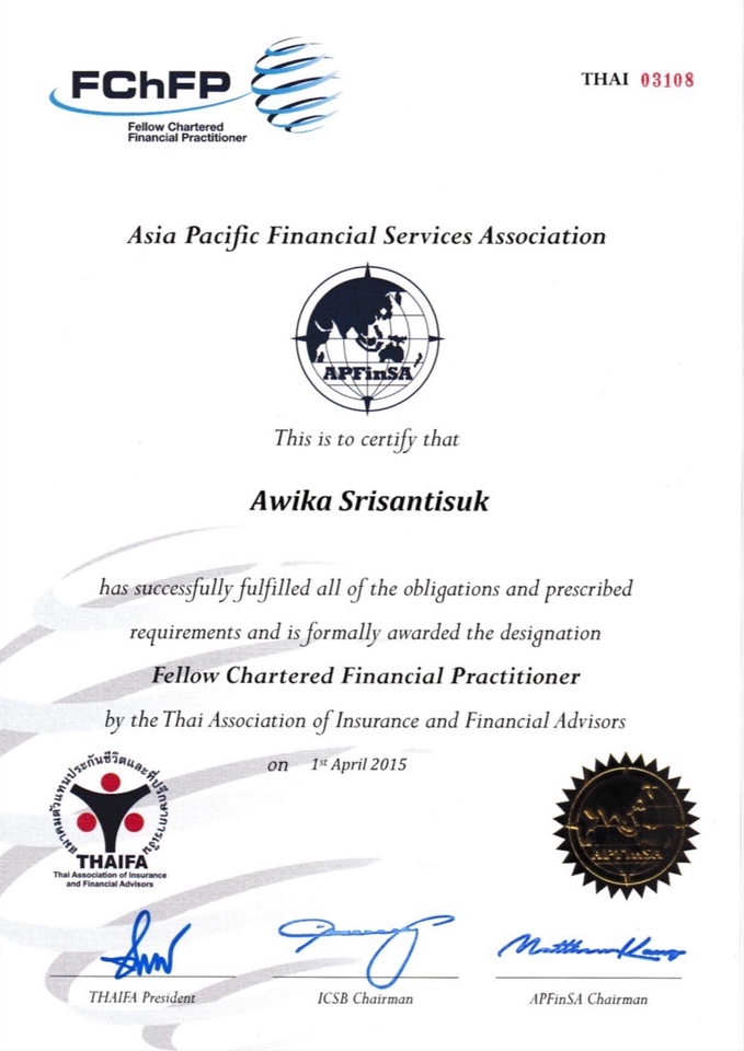 ที่ปรึกษาการเงิน FChFP เลขที่ผู้แนะนำการลงทุน : 055895 เลขที่ใบอนุญาตตัวแทน : 5401097516