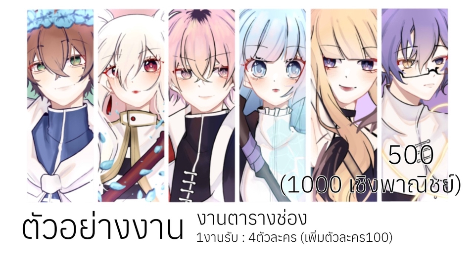 ♥︎ รับงานตัวละครจากเกมหรืออนิเมะ,OOC,ศิลปิน,อื่นๆ ♥︎ รายละเอียดตัวละครถ้าเยอะอาจจะเก็บรายละเอียดไม่ครบนะคะ ♥︎ สามารถเลือกท่าทางเองได้ ♥︎ 1งานรับ4ตัวละคร ( เพิ่มตัวละ100บ. ถ้าเพิ่มสัตว์เลี้ยงตัวเล็กๆในช่องฟรี1ตัวค่ะ ) ♥︎ ระยะเวลางาน1-2อาทิตย์ ( ตามจำนวนตัวละคร) ♡*♡∞:。.。。.。:∞♡*♡ ✦ ไม่รับหุ่นยนต์,ผู้ชายมีกล้าม,คนสูงอายุ ᕯ ปกติเราชอบวาดงานเเบบตารางช่องค่ะ ตัวอย่างงานจะเป็นตัวละครออริจินอลสวมชุดตัวละครที่ชื่นชอบ เลยอยากลองรับงานดูค่ะᕯ เรทราคา ☘ ราคาปกติ 500 บ. ต่อ1งาน ☘ ราคาเชิงพาณิชย์ 1000 บ. ต่อ1งาน ( เชิงพาณิชย์ ไม่ร่วมบวกเพิ่มถ้ามี ) ขอบคุณค่ะ มาสั่งกันได้นะคะ🙏💓✨