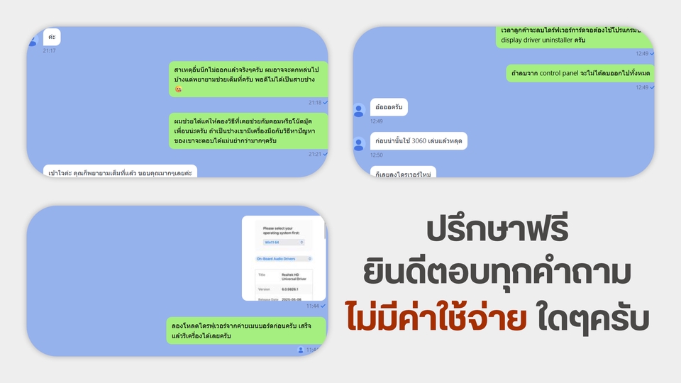 ฿500● แนะนำการตั้งค่า Windows และ BIOS เพื่อเพิ่มประสิทธิภาพคอมพิวเตอร์ ● สอนติดตั้งไดรเวอร์อย่างถูกวิธี โดยไม่กินทรัพยากรเครื่องเกินความจำเป็น ● ให้คำแนะนำเฉพาะบุคคลตามรูปแบบการใช้งาน เช่น ตั้งค่าเกม