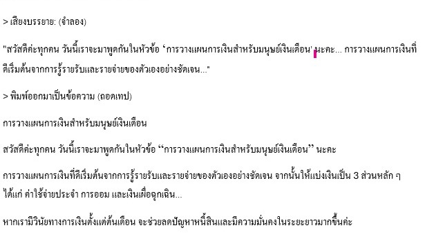 บริการงานพิมพ์เอกสาร พิมพ์ตามไฟล์ PDF, รูปภาพ หรือเสียง รองรับเอกสารทั่วไป รายงาน วิจัย งานราชการ สื่อการเรียน การสอน ระดับชั้น อนุบาล 1-3 ชั้นประถมศึกษา ปีที่ 1-6 บทความ ฯลฯ รวมถึงการจัดรูปแบบเบื้องต้น เช่น เว้นขอบ การตั้งระยะบรรทัด รูปแบบตัวอักษร และขนาดตัวอักษร ลูกค้าสามารถแนบไฟล์ต้นฉบับ พร้อมแจ้งความต้องการเพิ่มเติมได้ค่ะ ขั้นตอนการทำงาน 1. ลูกค้าแจ้งรายละเอียดงานที่ต้องการ เช่น ไฟล์ต้นฉบับ (ไฟล์เสียง/ไฟล์ภาพ/เอกสาร) รูปแบบงานที่ต้องการ (ไฟล์ Word/Excel/PDF) กำหนดระยะเวลาในการส่งงาน 2. ฉันตรวจสอบไฟล์ และยืนยันวันส่งงาน พร้อมเสนอราคา 3. เริ่มดำเนินงานตามรายละเอียดที่ตกลงไว้ -พิมพ์งาน/คีย์ข้อมูล/ถอดเทปเสียง -ตรวจสอบความถูกต้องก่อนส่งทุกครั้ง 4. ส่งงานให้ลูกค้าตรวจสอบ (รอบแรก) 5. หากต้องการแกไข สามารถแจ้งได้ 1-2 ครั้ง โดยไม่มีค่าใช้จ่ายเพิ่มเติม 6. ส่งไฟล์สำเร็วรูปตามที่ลูกค้าต้องการ
