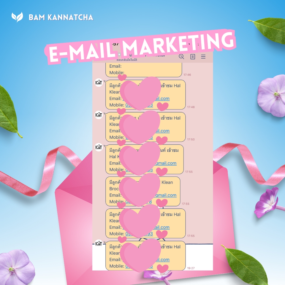 ฿10,000ออกแบบ , เขียนเนื้อหา, ส่ง 3 ครั้ง + รายงานลูกค้าที่สนใจทุกวัน + connect ลูกค้าที่สนใจให้แบบ real-time ผ่านไลน์ ลูกค้าสามารถโทรติดต่อลูกค้าที่สนใจเพื่อปิดการขายได้เลย (จำนวนอีเมลไม่เกิน 100 รายชื่อ)
