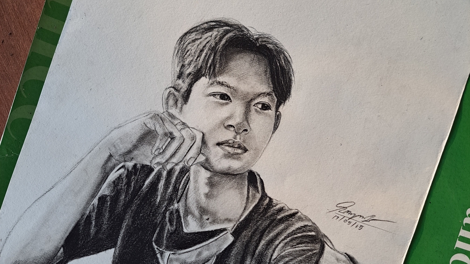 รับวาดภาพเหมือน บนกระดาษ ขาวดำ. A4 รูปเดี่ยว500 รูปคู่ 600 A3.รูปเดี่ยว 800 รูปคู่850 A2. รูปเดี่ยว1000 รูปคู่ 1100 A1. รูปเดี่ยว,คู่1800 ***ไม่รวมกรอบ*** บนเฟรมผ้าใบ 30×40 1000 40×50. 1200 60×80 2500 70×90 3500 100×120 4500 ***ไม่รวมกรอบ*** ขั้นตอนการทำงาน 1. ให้ลูกค้าเลือกระบุขนาดของกระดาษให้ชัดเจน 2. ให้ลูกค้าส่งรูปภาพต้นแบบมาให้วาด 3. ให้ลูกค้าเลือกเอาว่าจะใส่กรอบหรือไม่ใส่กรอบ กรณีไม่ใส่กรอบจะส่งรูปต้นฉบับโดยแพ็คงานอย่างดี เพื่อไม่ให้รูปเสียหาย 4. ช่วงระว่างทำงานจะส่งรูปไปอัปเดตให้เป็นระยะๆ 5. เมื่อลูกค้าจ่ายตังแล้วจึงจะสามารถเริ่มงานได้ จะไม่เริ่มงานก็ต่อเมื่อลูกค้ายังไม่ชำระเงิน