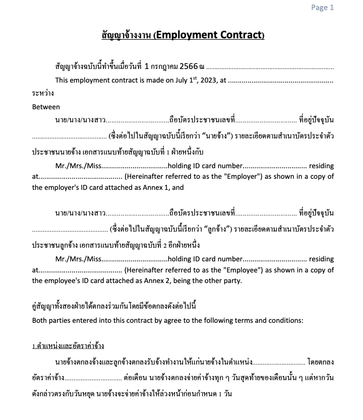 ร่างสัญญาทางกฎหมายไทย-อิ้ง อิ้ง-ไทย