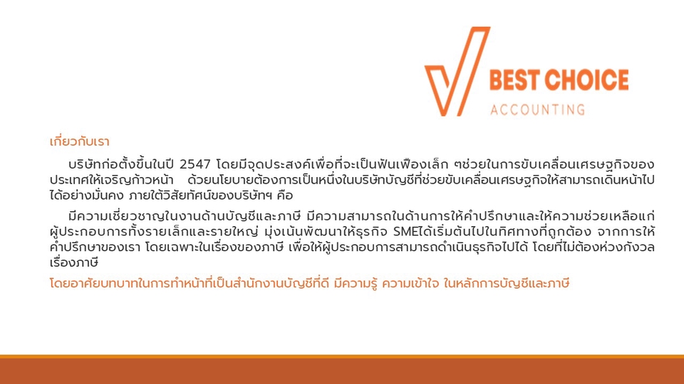 บริการให้คำปรึกษาด้านบัญชี ภาษี รับทำบัญชีทั้งระบบ โดยผู้ทำบัญชีที่มีประสบการณ์ การทำบัญชี และรวมถึงการทำบัญชีร้านค้าออนไลน์ที่กำลังมาแรงในยุคปัจจุบัน