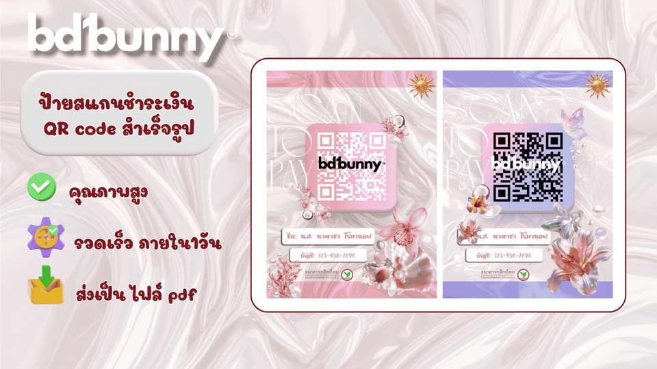 ป้ายสแกนชำระเงิน QR code ติดแกลม ไม่ซ้ำใคร 🌺✨