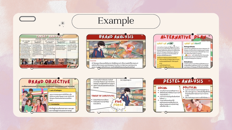 รับออกแบบPresentation/PowerPointได้หลากหลายรูปแบบ กระชับ เข้าใจง่าย ถนัดทำสไลด์ Business สามารถสอบถามราคาก่อนได้ค่ะ เริ่มต้น 15 สไลด์/500 บาท บริการอ่านสรุปเริ่มต้น 300 บาท ระยะเวลาการทำงาน 2-5 วัน มีความรู้ด้านData Visualization และด้าน Business มีประสบการณ์การทำสไลด์สำหรับแข่ง Business Case ทำPitch Deckแข่ง Startup Thailand League เข้าDemo Day ขั้นตอนการทำงาน 1. ส่งไฟล์มาเพื่อประเมินจำนวนหน้าPresentation 2. พูดคุยรายละเอียดเนื้อหาของงาน รูปแบบของสไลด์ ข้อมูลสำคัญ จำนวนหน้า 3. คุยเรื่องราคา