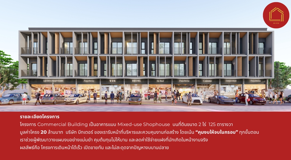 • ให้คำปรึกษางบประมาณเเละเจรจาต่อรองกับทางผู้รับเหมา