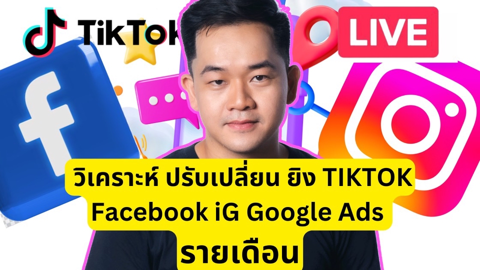 ยิงแอดโฆษณา TikTok Facebook Google iG Ads คอนเท้น รายเดือน วิเคราะห์เก่า ปรับปรุง แก้ไขให้