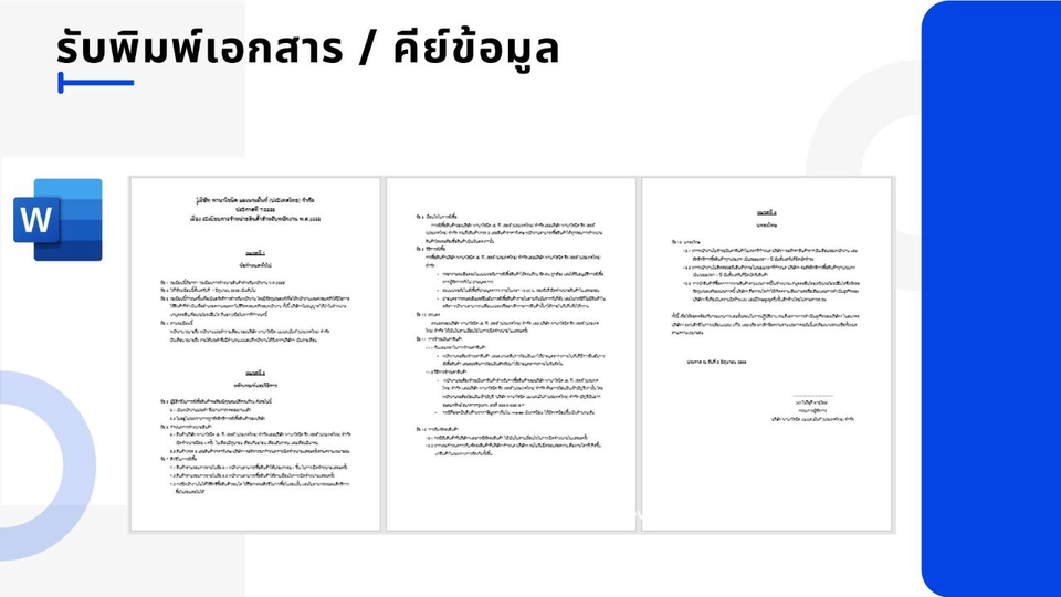 รับพิมพ์งานเอกสารทั่วไป คีย์ข้อมูล จัดหน้ารายงาน