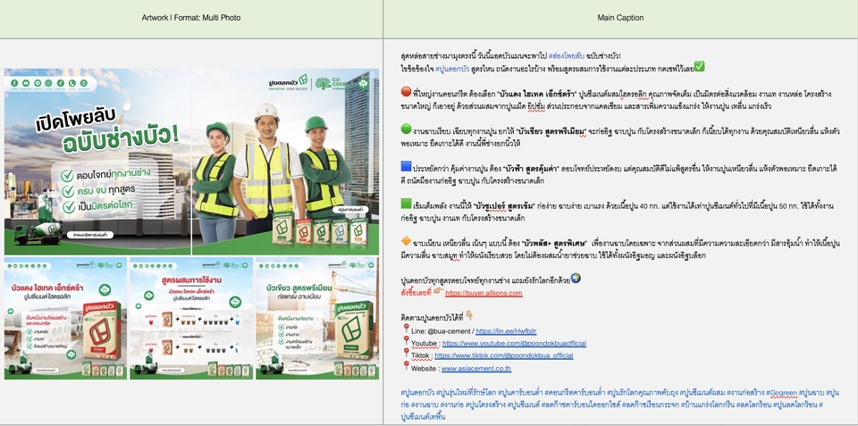 ฿1,5001 Content [Single Photo] ✨Idea ・คิดไอเดียจากบรีฟลูกค้า สร้างสรรค์เป็นชิ้นงานไม่เหมือนใคร ✨Copy on Artwork & Caption ・เสกคำฮุกโดนใจ เข้าใจง่าย ย่อยความยากให้เข้าถึงผู้บริโภค 💡Mock up & Reference ・สร้างสรรค์รูปแบบภาพพร้อมตัวอย่าง เพื่อส่งต่อให้กราฟิกทำงานง่ายยิ่งขึ้น
