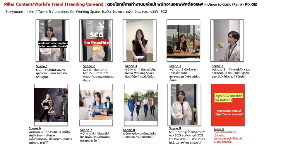 ฿5,0001 Content [VDO] ✨Idea ・คิดไอเดียจากบรีฟลูกค้า สร้างสรรค์เป็นชิ้นงานไม่เหมือนใคร ✨Super & Caption ・เสกคำฮุกโดนใจ เข้าใจง่าย ย่อยความยากให้เข้าถึงผู้บริโภค ✨Script & Storyline ・เรียบเรียงเนื้อหาและลำดับของ VDO 💡Mock up Storyboard & Reference ・วางสอตรี่บอร์ดคร่าวๆ ให้เห็นภาพ พร้อมตัวอย่างรูปแบบ VDO เพื่อให้ กราฟิก, คนถ่าย, คนตัดต่อ ทำงานได้ง่ายยิ่งขึ้น