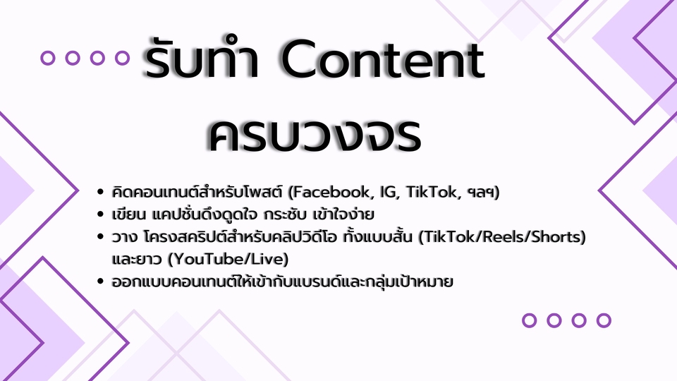 ทำงานด้าน content creator มีประสบการณ์การทำงานด้านนี้มา 2 ปี 📌 Skill : – วางแผนคอนเทนต์ / คิดไอเดียคลิป / AW – ตัดต่อ CapCut Pro / Canva / AI – ถ่ายคลิป / ใส่เอฟเฟกต์ / คิดแคปชั่น – ทำคอนเทนต์ TikTok – ดูแลเพจ + Line OA – เขียนสคริปต์ – เขียนข่าว – เขียนบทความ – เขียนบทความทำรูปภาพart work Budget ตามตกลง หรือแล้วแต่ Scope งานค่ะ 📥 ทักมาคุยกันได้นะคะ หนูเหงาอยากทำงานค่ะ📥
