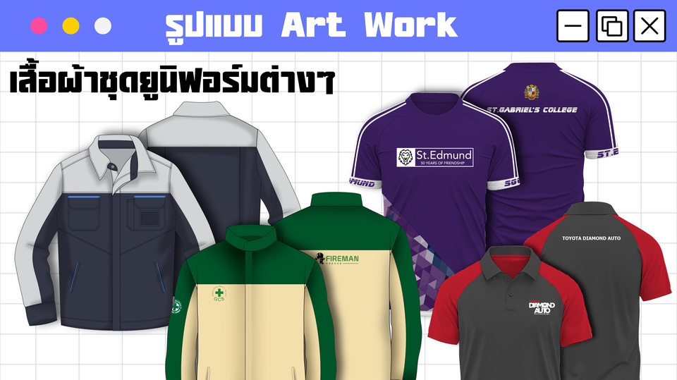 ผลงานการออกแบบเสื้อผ้า การจัดวาง ART WORK การนำเสนองานตามลูกค้ากำหนด