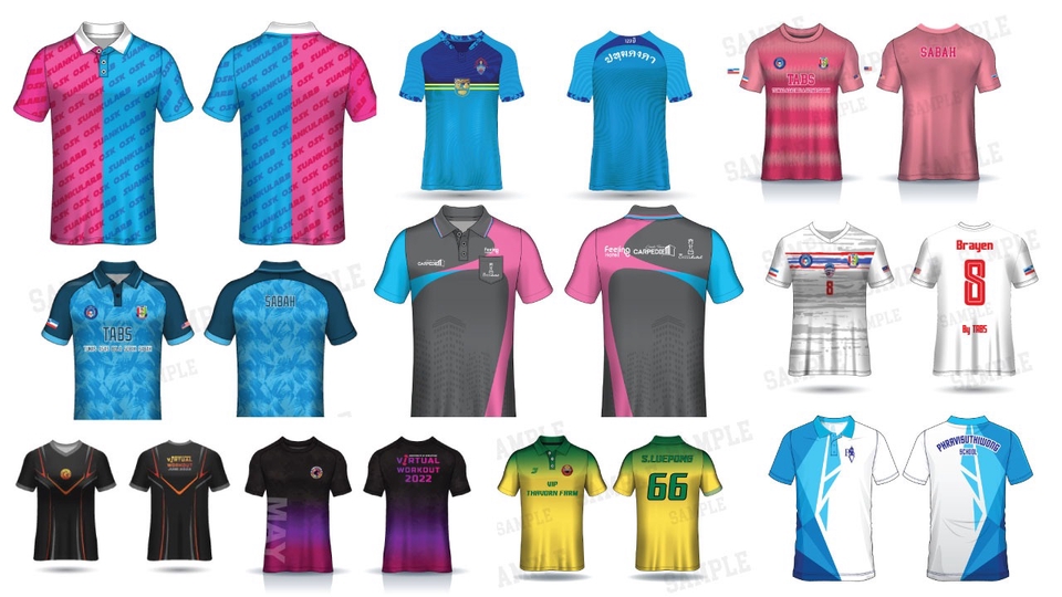 ฿500รับออกแบบเสื้อกีฬา ชมรม มหาลัย บริษัท ขั้นตอนการสั่ง 1. แจ้ง Ref. ที่ลูกค้าต้องการ เช่น รูปแบบเสื้อ สีเสื้อ รายละเอียดที่ต้องการเพิ่มเติม แบบชัดเจน 2. หลังจากสรุปแบบที่ตรงกัน ใช้เวลาทำแบบ 3-5 วัน