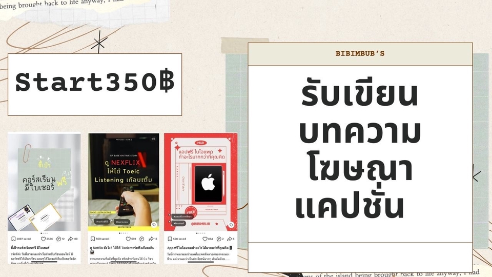 รับเขียนบทความ มีภาษาเป็นของตัวเอง สามารถรีเสิร์จคร่าวๆ แต่ถ้าสินค้าลูกค้าอาจจะต้องให้ข้อมูลหรือคีเวิร์ด Key message มาให้เราก่อน งานที่ถนัด - เขียนบทความ - แคปชั่น ดูผลงานได้ที่ https://s.lemon8-app.com/s/fyYvdpeNQR https://s.lemon8-app.com/s/weeNdpeNQR https://s.lemon8-app.com/s/NkxkdpeNQR https://s.lemon8-app.com/s/MhbfdpeNQR ขั้นตอนการทำงาน 1. เลือกหัวข้อที่ลูกค้าต้องการ 2. เลือกแพคเกจและชำระ