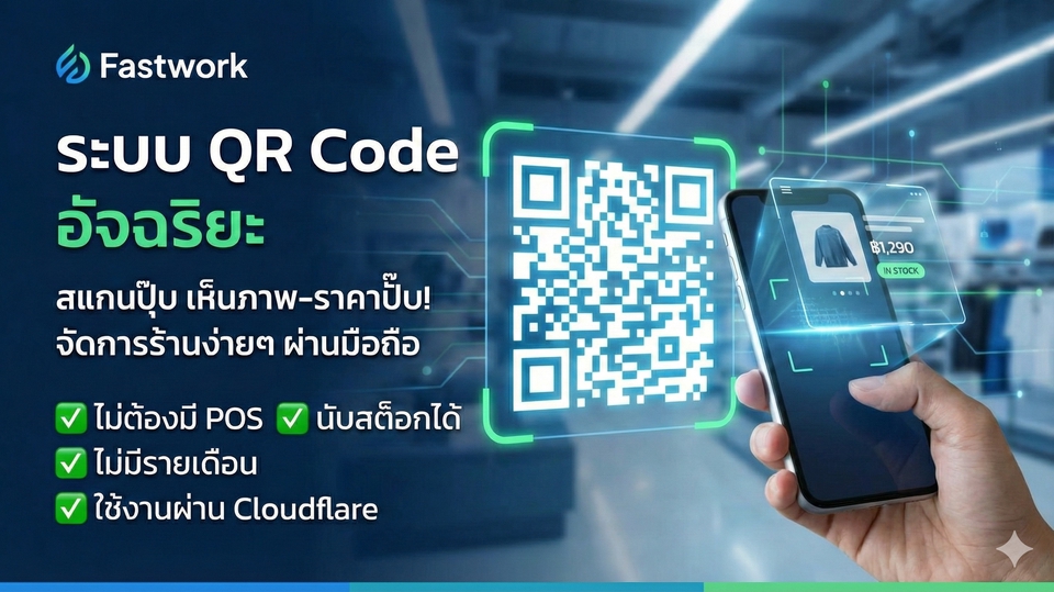 "เปลี่ยนธุรกิจให้ล้ำสมัย ด้วยระบบ QR Code ที่ครบที่สุด! รองรับทั้งร้านค้าและร้านอาหาร" บริการทำเว็บแอปพลิเคชัน (Web App) ที่เปลี่ยนมือถือให้เป็นเครื่องมือจัดการร้านค้าแบบมือโปร ไม่ต้องง้อเครื่อง POS แพงๆ ลงทุนครั้งเดียวจบ ไม่มีค่าเช่าเซิร์ฟเวอร์รายเดือน (Cloudflare Serverless) ✨ ระบบนี้ทำอะไรได้บ้าง? (แยกตามประเภทธุรกิจ) 🏪 1. สำหรับร้านค้า / โกดัง (Smart Retail & Stock) QR Code Stock: ใช้มือถือสแกน QR Code เพื่อ "นับสต็อก", "รับของเข้า", "ตัดของออก" ได้แม่นยำและรวดเร็ว Smart Label: พิมพ์สติ๊กเกอร์ QR Code ติดสินค้า หรือ ชั้นวาง ให้ลูกค้าสแกนดู รูปภาพ + ราคา (E-Catalog) ได้เองทันที Document: ออกใบกำกับภาษี (A4), ใบเสร็จรับเงิน, ใบปะหน้าพัสดุ ผ่านระบบได้เลย 🍽️ 2. สำหรับร้านอาหาร / คาเฟ่ (Smart E-Menu) QR Menu: ลูกค้าสแกน QR Code บนโต๊ะ เพื่อดู เมนูอาหารรูปสวยๆ + ราคา (ไม่ต้องสัมผัสเล่มเมนู) Real-time Update: เจ้าของร้านแก้ไขราคาหรือรูปภาพผ่านมือถือ เมนูหน้าร้านเปลี่ยนทันที (ไม่ต้องพิมพ์เล่มใหม่) 💰 ความคุ้มค่าที่คุณจะได้รับ ❌ ไม่มีรายเดือน ระบบรันบน Cloudflare (Serverless) ฟรีตลอดชีพสำหรับ SME ประหยัดเงินปีละหลายพันบาท ✅ เป็นเจ้าของข้อมูล 100% ฐานข้อมูลและรูปภาพทั้งหมดเป็นสิทธิ์ของคุณ (ใช้บัญชี Cloudflare ของคุณเอง) 🚀 ใช้งานง่าย แค่มีมือถือเครื่องเดียว ก็ดูแลร้านได้ทุกที่