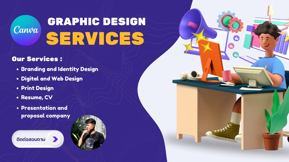 ฿600 ระยะเวลาในการทำงาน 3 วัน จำนวนการปรับแก้ชิ้นงาน 3 ครั้ง