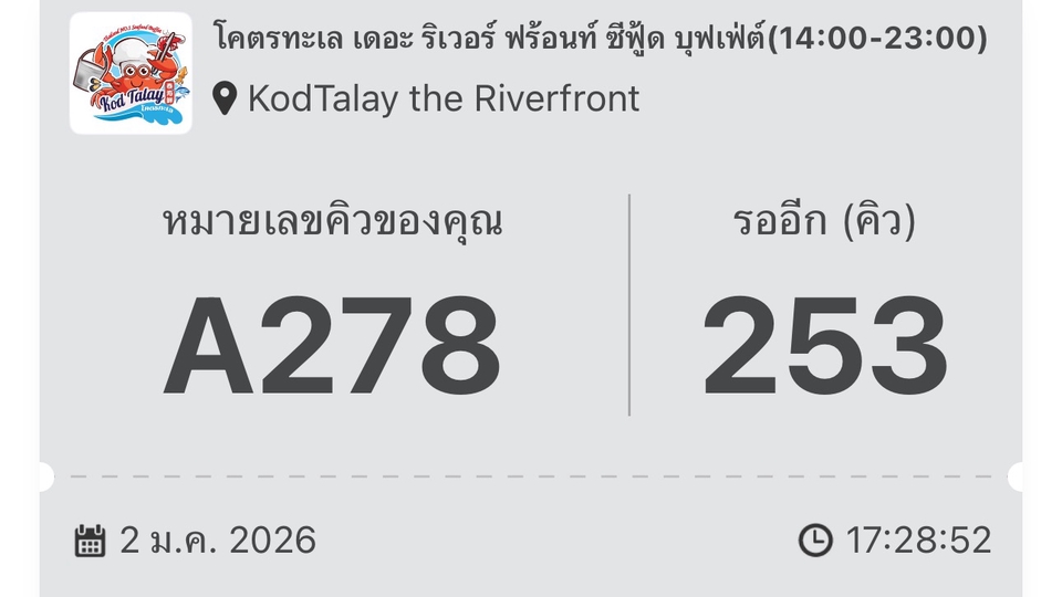 เบื่อไหมกับการต่อคิวยาวที่ โคตรทะเลซีฟู้ด? เรามีบริการพิเศษ รับจองโต๊ะร้านโคตรทะเล ทุกสาขา เพื่อให้คุณได้อร่อยแบบไม่ต้องเสียเวลาไปยืนรอคิวให้เมื่อย ไม่ว่าจะเป็นช่วงเวลาไพร์มไทม์ หรือวันหยุดสุดสัปดาห์ คุณก็สามารถตรงไปที่ร้านและเข้าโต๊ะได้เลย บริการนี้เหมาะสำหรับ: * คนที่ไม่อยากเสียเวลาไปรับคิวแล้วรอหน้าร้านเองหลายชั่วโมง * ไม่อยากเป็นคนไปรับคิวก่อน สามารถมาพร้อมเพื่อนได้เลย เข้าร้านได้ทันที เพียงแจ้งจำนวนคน สาขาที่ต้องการ จะจัดการจองคิวให้คุณเรียบร้อย ทำให้คุณมีเวลาเหลือไปทำกิจกรรมอื่นๆ หรือเตรียมตัวไปอิ่มอร่อยได้อย่างเต็มที่!