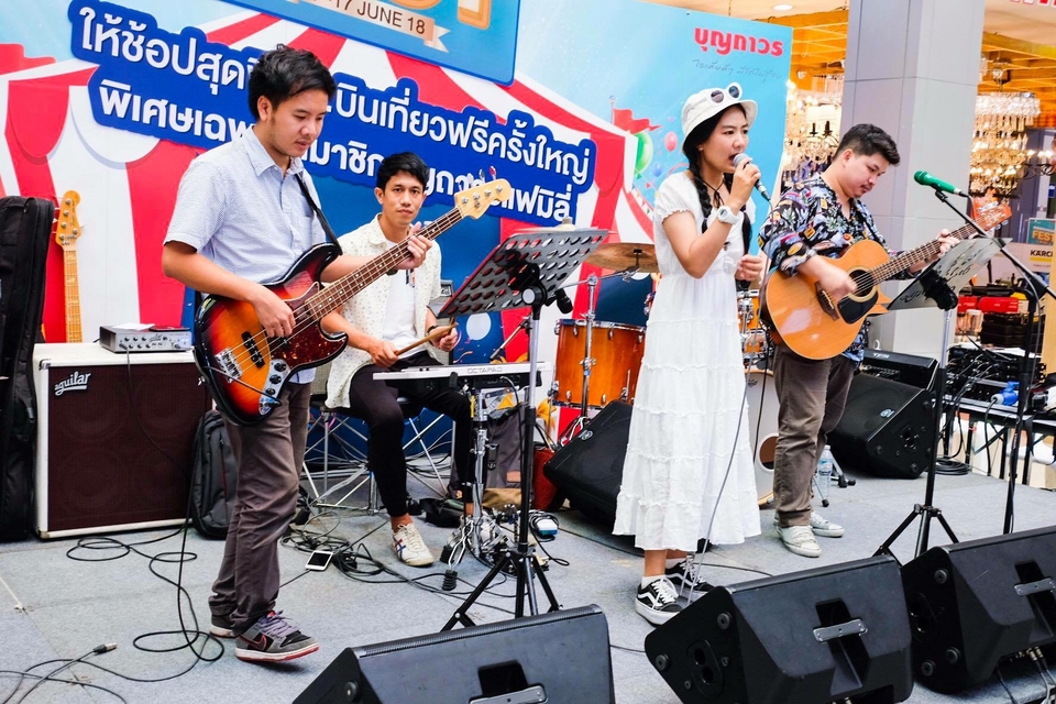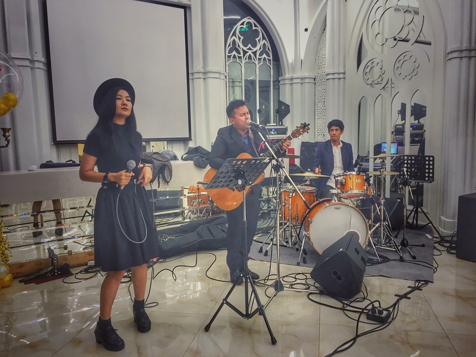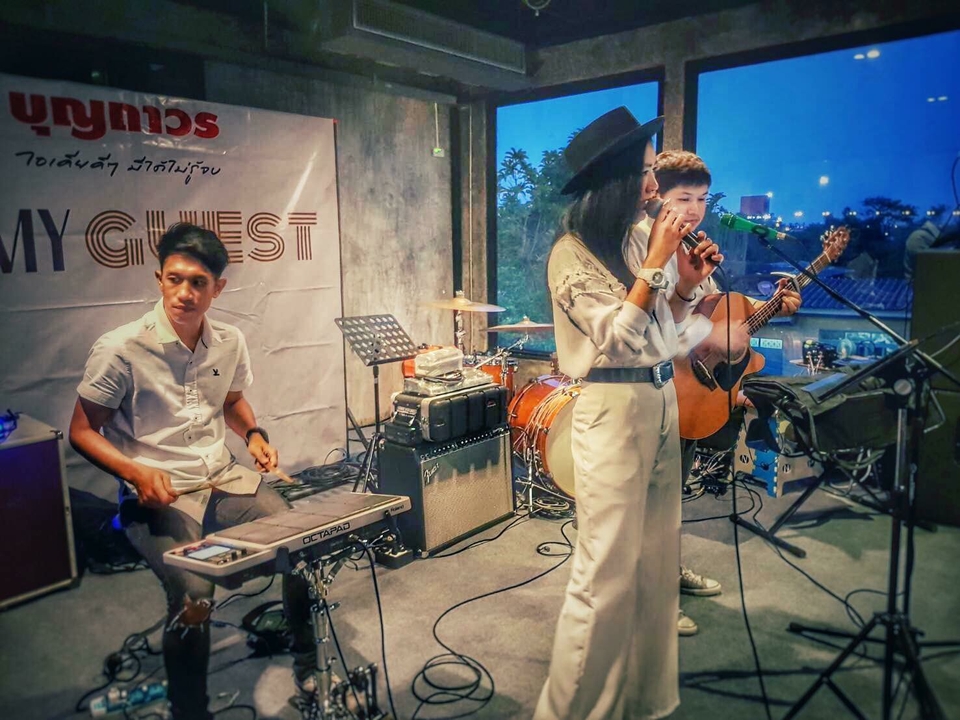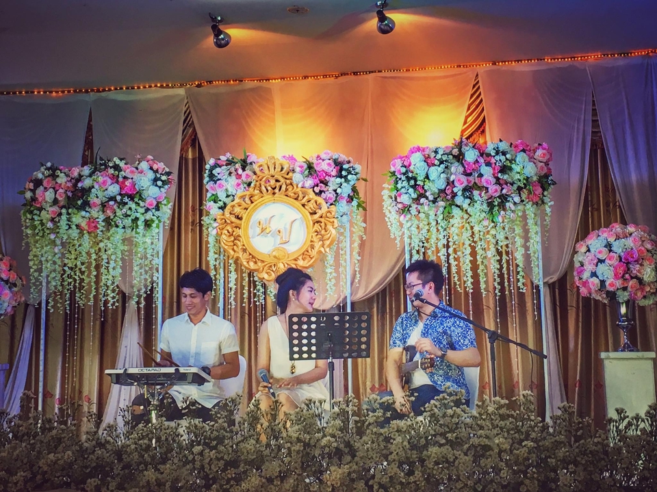 ฿20,000วงดนตรีอคูสติกสามคน กีตาร์ นักร้องหญิง กลองไฟฟ้า พร้อมเครื่องเสียง และผู้ดูแลซาวด์ในงาน แนวเพลงฟังสบายๆไปจนถึงสนุกสนาน