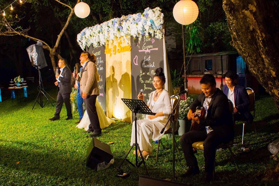 วงดนตรีคุณภาพระดับมืออาชีพ ผ่านงานแต่งงาน และงานเลี้ยง งาน event ในศูนย์การค้าชื่อดัง และแบรนด์สินค้าต่างๆกว่า 500 งาน ขั้นตอนการทำงาน 1. ติดต่อสอบถามคิวงานของวงดนตรี 2. แจ้งลักษณะของงาน และช่วงเวลาที่วงดนตรีต้อง standby 3. งานที่ต้องออกต่างจังหวัด ราคาจะเพิ่มขึ้นตามระยะทาง