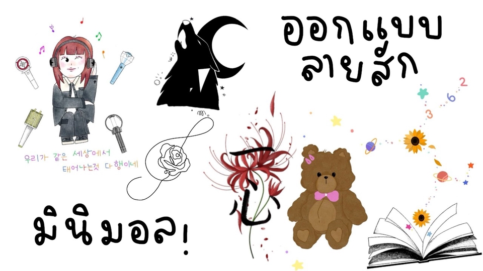 รายละเอียดงาน -รับออกแบบลายสัก/รอยสัก มินิมอล ขั้นตอนการทำงาน 1. พูดคุยและตกลงรายละเอียดของลายสัก อยากได้แบบไหนบอกได้อย่างสบายใจเลยนะคะ สามารถยื่นเรฟ หรืออะไรก็ได้ จะได้เห็นภาพตรงกันมากที่สุด 2. เริ่มงาน 3. ส่งงาน