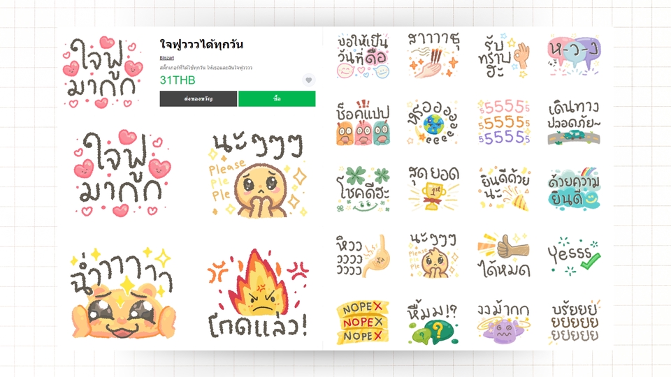 รับออกแบบสติ๊กเกอร์ไลน์ | LINE Sticker โดยนักออกแบบมากประสบการณ์ 💖 --- ✨ ออกแบบโดยเจ้าของเพจ @smilenoout บัญชีที่มียอดผู้ติดตามมากกว่า 290,000 บัญชี ✨ ซึ่งบอกเล่าเรื่องราวความรัก อกหัก ผ่านตัวละครที่ทำมาแล้วกว่า 6 ปี ✅ จึงรับประกันว่า ทุกการออกแบบ มีเรื่องราว และสื่อถึงอารมณ์ความรู้สึกอย่างดีเยี่ยม ✅ ตัวละครมินิมอล จดจำง่าย จุดเด่นชัดเจนด้วยดีไซน์และสีสัน ✅ เลือกได้ว่าจะใช้ฟอนต์ (จะเป็นฟอนต์ทั่วไปที่ไม่ติดลิขสิทธิ์) หรือจะเป็นลายมือนักออกแบบ เป็นข้อความประกอบ สิ่งที่ลูกค้าจะได้จากทางร้าน ⭐ รูปสติ๊กเกอร์ไลน์ทั้งหมดตามจำนวนชุด ( 8 ตัว , 16 ตัว หรือ 32 ตัว) 300 dpi ⭐ ฟรี !! รูปโชว์บนหน้าร้านสติ๊กเกอร์ ⭐ ฟรี !! รูปไอคอนสำหรับใส่ในแถบแชท ⭐ ได้รับเป็นไฟล์สกุล .png (พื้นหลังใส) รวมกันเป็น file .zip .rar ความละเอียดครบถ้วน ⭐ ไฟล์รูปทุกรูปตั้งชื่อเรียงลำดับเรียบร้อยพร้อมอัปโหลดเข้าระบบได้เลย --- คุณลูกค้าสามารถส่งรูปตัวอย่างมาเพื่อประเมินกับทางผู้ออกแบบก่อนได้ครับ 😁 ขั้นตอนการทำงาน 1. รับบรีฟรายละเอียดต่าง ๆ ประกอบไปด้วยธีม โทนสี หรือไม่ จากนั้นจึงเริ่มต้นแบบร่าง 2. หลังร่างเสร็จจะส่งดราฟท์แรกให้ลูกค้าพิจารณา โดยสามารถแก้ไขได้ 2 ครั้ง เมื่อผ่านแล้วจึงจะทำการลงสี 3. เมื่อลงสีเสร็จแล้วจึงส่งให้ทางลูกค้าพิจารณาอีกครั้ง โดยสามารถแก้ไขได้ 2 ครั้ง (สามารถแก้ไขได้เฉพาะสี โทนสี ไม่สามารถแก้ไขรูปได้) 4. เมื่อลูกค้าทำการยืนยันดราฟต์สุดท้ายแล้ว ทางผู้ออกแบบจะส่งไฟล์ทั้งหมดดังรายละเอียดที่ได้แนบไว้ในแต่ละแพ็คเกจ