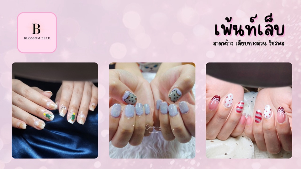 ฿599ทางร้านมีลายเล็บ สวยๆ น่ารักๆ ให้ลูกค้าได้เลือกดู หรือลูกค้าจะหาลายมาให้ช่างได้ค่ะ