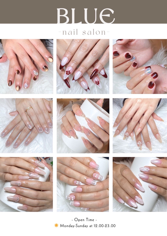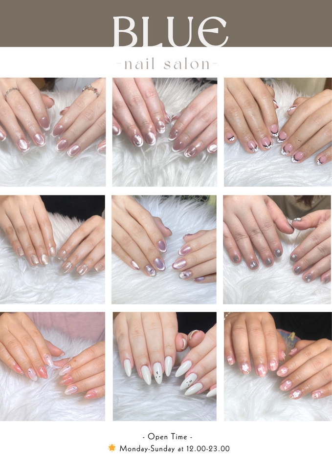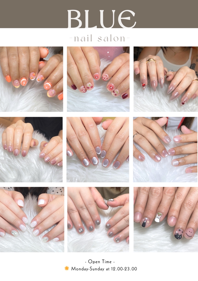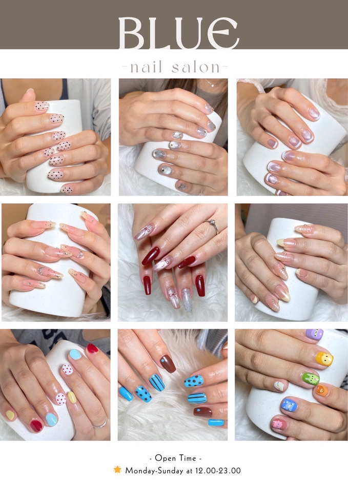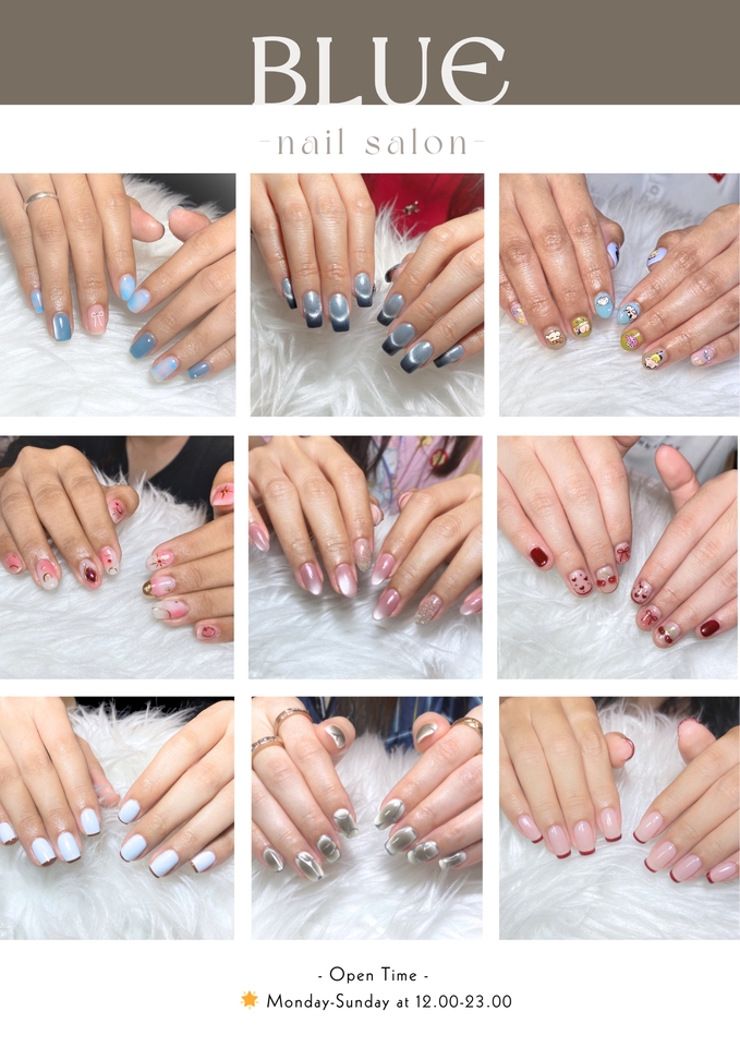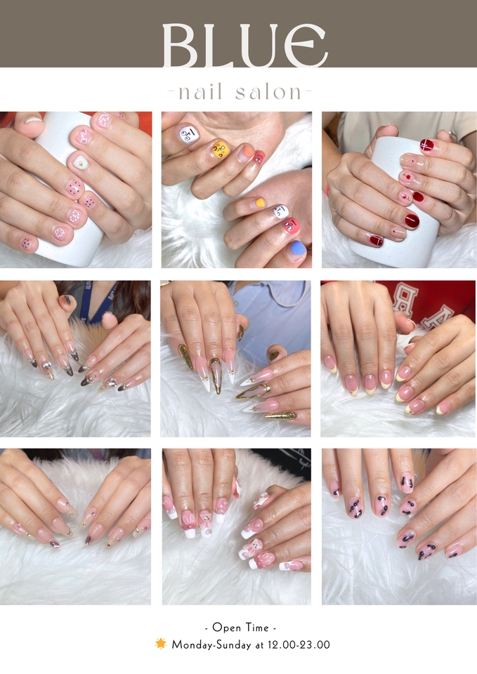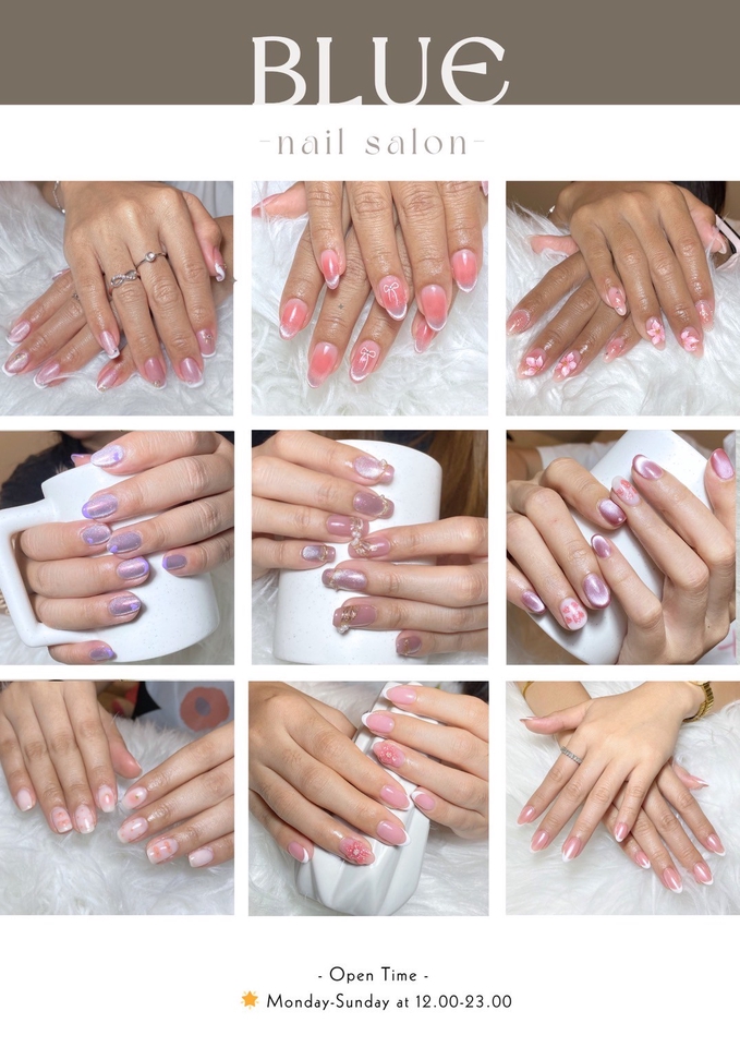 📍ร้าน “ BLUE nails" ร้านอยู่ในคอนโด บลู พหลโยธิน35 นะคะ(ใกล้กับเมเจอร์รัชโยธิน) 💅✨ราคาทำเล็บ ทาสีเจล✨ - ทาสีพื้น 199.- - ทาสีกริตเตอร์/แฟลช/ลูกแก้ว 259.- - ขัดผง 299.- - เฟร้นปลาย/ออมเบร 429.- - ทำลายอาร์ต 30/นิ้ว - ติดอะไหล่ 25/ นิ้ว - สติกเกอร์ 15/นิ้ว *ทำเล็บเท้าบวกเพิ่ม +50 บาท รายการต่อเล็บ+เสริมหน้าเล็บ - เสริมหน้าเล็บ 150.- - ต่อเล็บ pvc เว้นโคน 200.- -รายการล้างสีเจล 49.- -ถอดเล็บPVC 99.- *โปรล้างสี (ระยะเวลา 3เดือน) 99.- ❗️(ฟรี)ตัดหนังทุกเคสและสะสมแต้ม❕ 🎀✨ฝากร้านน้อยๆในคอนโดของเราด้วยนะคะ ใส่ใจรายละเอียด สอบถามความต้องการ สามารถทักเข้ามาสอบถามหรือส่งตัวอย่างมาให้ดูก่อนได้นะคะ🥰