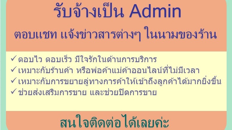 รับจ้างเป็นแอดมิน ,ไลฟ์ เป็นได้ทุกอย่าง ทำได้หมดค่ะ