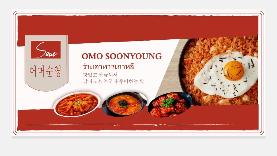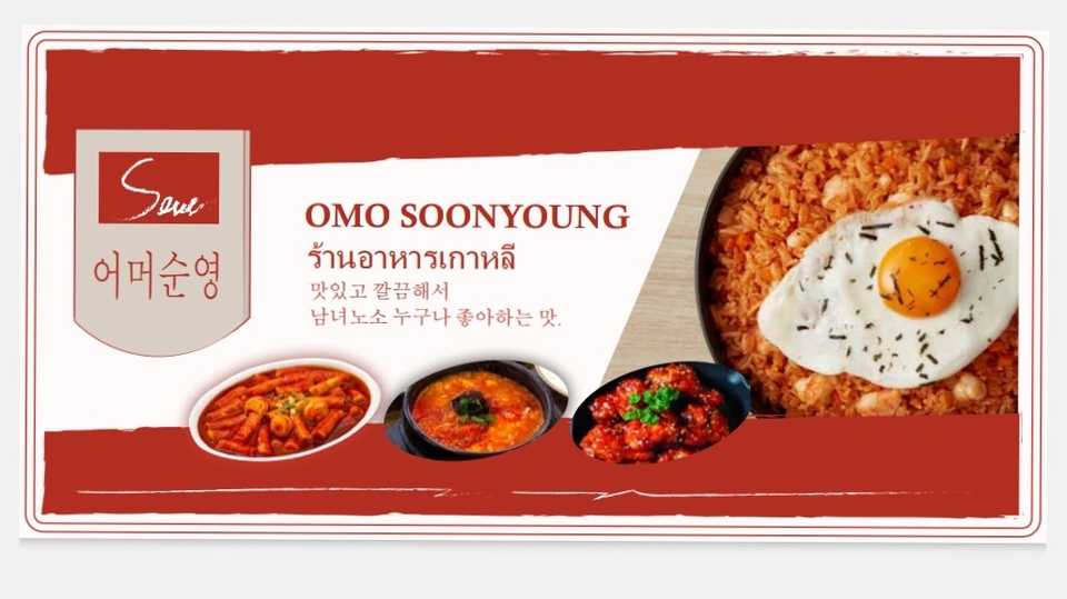 เป็นงานที่ออกแบบพร้อมกับป้ายโรวอัพ ต้องการให้ป้ายมีอะไรเกี่ยวข้องหรืออยู่ในโทนเดียวกัน โดยมีการเลือกโทนสีให้เข้ากับประเภทอาหารของร้านนั้นๆ ทางตัวนี่จะให้ชิ้นงานออกแบบไปทางเดียวกัน ขั้นตอนการทำงาน 1. เลือกขนาดของงาน วางแผนเรื่องการจัดตำแหน่งองค์ประกอบของงาน 2. ลงงาน ตรวจรายละเอียด เช็คงาน