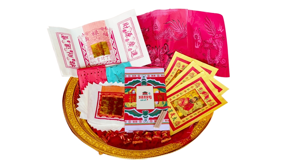 ฿988กระดาษเงินทอง+ใบคำขอพร+ซินแสสวดปัดเป่าสะเดาะเคราะห์ ฟรี+ ยันต์แก้ชง 1 ชิ้น