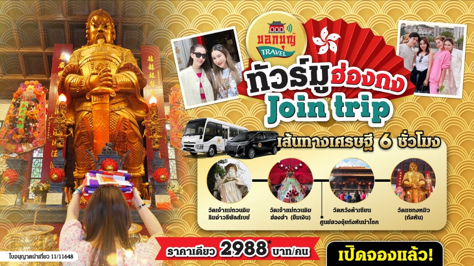 ฿2,988🛕 รายละเอียดทริป 🔹 10.00 น. พบกันที่ K11 Art Mall 🔹 วัดเจ้าแม่กวนอิม ทินหัว 🙏✨ 🔹 วัดหว่องไท่ซิน 🏯🌿 🔹 วัดเจ้าแม่กวนอิม ฮ่องฮำ 🕉️💖 🔹 วัดแชกงหมิว (วัดกังหัน) 🌪️🕌 🔹 16.00 น. เดินทางกลับ