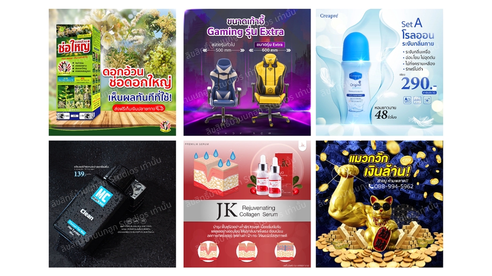 รับออกแบบภาพสื่อโฆษณา ทำคอนเทนต์ ป้ายแอด ปกเพจ / รีวิว / นามบัตร สำหรับลงสื่อออนไลน์ ไอเดียตัน อยากได้ป้ายโปรโมทสินค้าให้ตรงกลุ่มเป้าหมาย ลูกค้าเกิดการจดจำ กระตุ้นยอดขาย เพิ่มออเดอร์ เข้าถึง ให้หนูช่วยออกแบบให้นะคะ มีทั้งราคาต่อชิ้น และราคาเหมาเป็นชุดนะคะ สามารถพูดคุยสอบถามหนูก่อนได้เลย ราคาพูดคุยกันได้นะคะ ดูรายละเอียด และความต้องการของคุณลูกค้าเป็นหลักค่ะ ราคาไม่แรงเจ้า ** ทุกชิ้นใส่ใจทุกรายละเอียด / งานไว / ตรงบรีฟ งานป้ายขาย เรียบหรู รีวิว หนูทำได้หลายแนวนะคะ พร้อมรับงานค่ะ ขั้นตอนการทำงาน 1. คุยรายละเอียด ราคา / บรีฟงาน รูปแบบ สี สไตล์ที่อยากได้ (แบบละเอียด / ระบุขนาดให้ชัดเจน) 2. คุณลูกค้าเตรียมไฟล์ที่เป็นในการใช้ทำป้าย เช่น โลโก้/รูปภาพ/ขนาด/ข้อความ และอื่นๆ 3. หนูเริ่มทำงาน ระยะเวลาในการทำงาน 1-3 วัน ทั้งนี้ขึ้นอยู่กับรายละเอียด และความยากง่ายของชิ้นงานอีกที 4. ส่งแบบงานให้คุณลูกค้าเพื่อตรวจสอบ (คุณลูกค้าสามารถแก้งานได้ 3 ครั้ง จากงานรูปแบบเดิม) หากเกิน 3 ครั้งคิดครั้งละ 100 บาท 5. ส่งไฟล์งานขั้นตอนสุดท้ายเมื่อออกแบบเสร็จให้คุณลูกค้า คุณลูกค้าจะได้รับเป็นไฟล์ภาพ (JPG) นะคะ